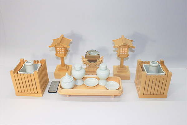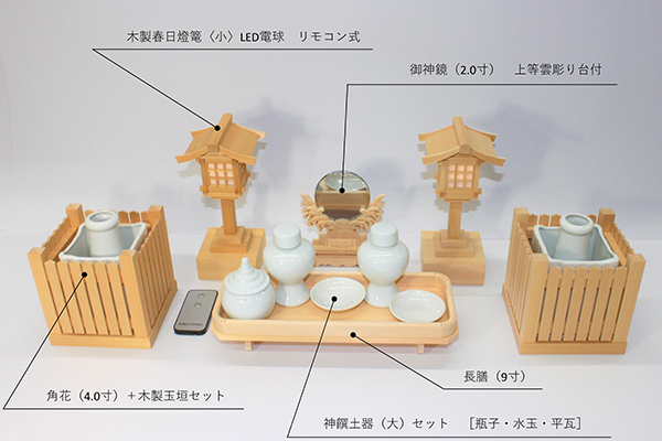 神宮一社 [上品] + 神具3 点セット(中) + 簡易袖板付き棚板(中)
