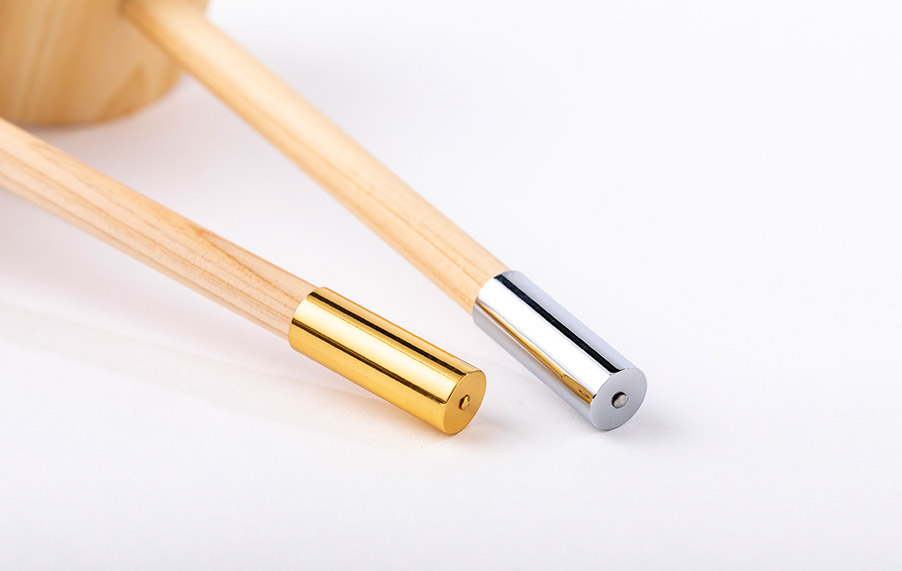 第二弾モデル「手水日和mini」では、シンプルでよりコンパクトに仕上げました。持ち手の先端に取り付けたキャップ金具は、本金鍍金とニッケル鍍金の2種類による仕上げを施し、強度を保ち高級感のある仕様と致しました。